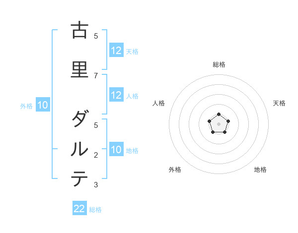 古里 ダルテさんの総格は22画の1点!