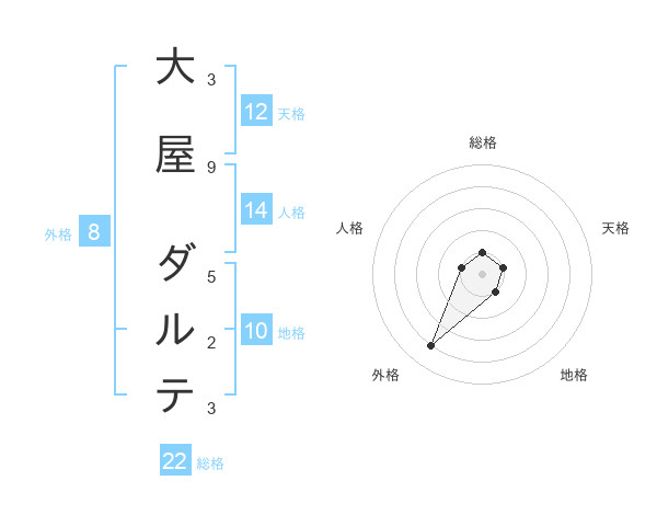 大屋 ダルテさんを姓名の画数から五運を鑑定