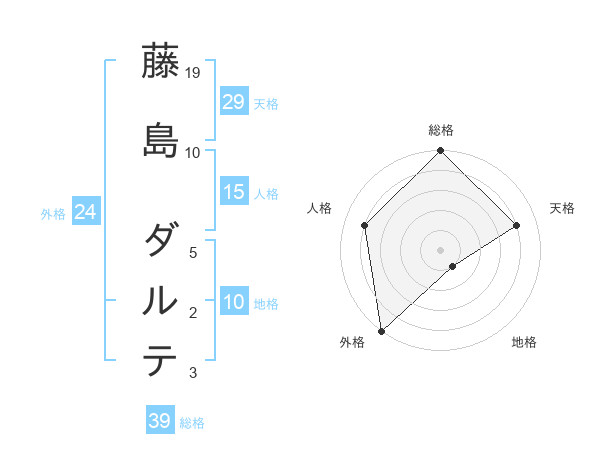 藤島 ダルテさんを姓名の画数から五運を鑑定