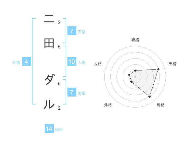 二田 ダルさんの天格は7画の4点!
