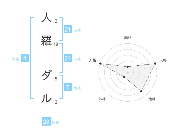 人羅 ダルさんの天格は21画の5点!