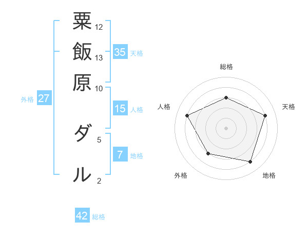 粟飯原 ダルさんを姓名の画数から五運を鑑定
