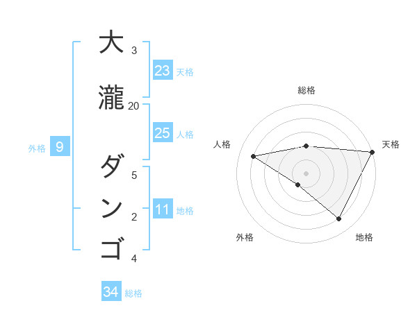 大瀧 ダンゴさんを姓名の画数から五運を鑑定
