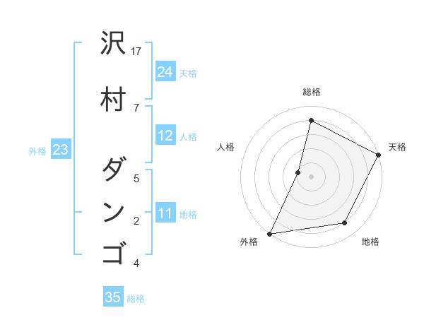 沢村 ダンゴさんを姓名の画数から五運を鑑定