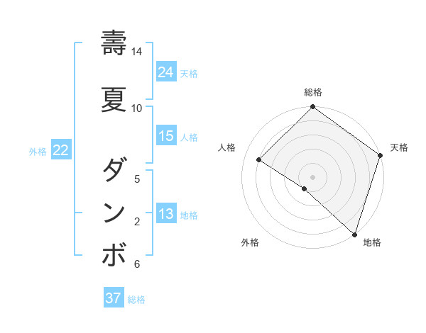 壽夏 ダンボさんの総格は37画の5点!