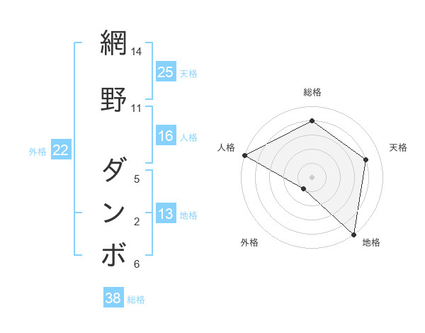 網野 ダンボさんを姓名の画数から五運を鑑定