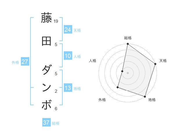 藤田 ダンボさんの総格は37画の5点