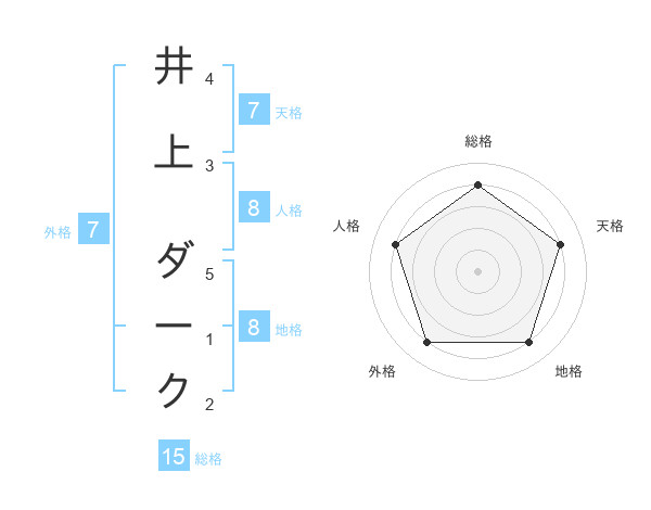 井上 ダークさんの天格は7画の4点