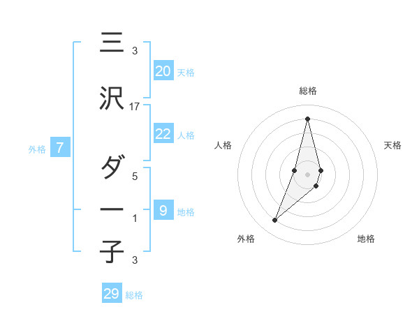 三沢 ダー子さんを姓名の画数から五運を鑑定