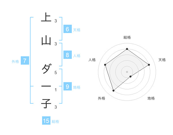 上山 ダー子さんを姓名の画数から五運を鑑定