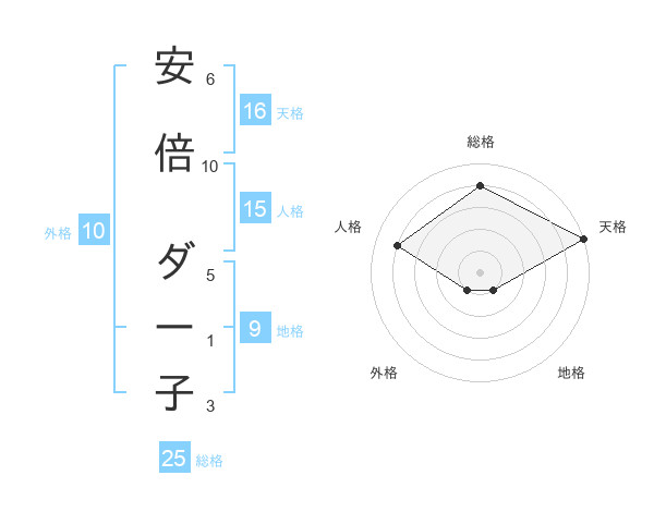 安倍 ダー子さんを姓名の画数から五運を鑑定