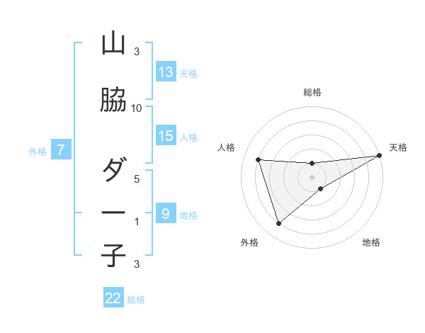 山脇 ダー子さんを姓名の画数から五運を鑑定