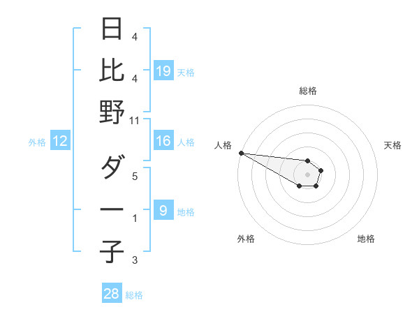 日比野 ダー子さんを姓名の画数から五運を鑑定