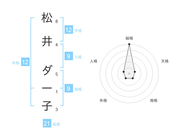 松井 ダー子さんを姓名の画数から五運を鑑定