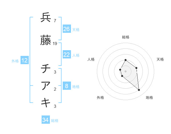 兵藤 チアキさんを姓名の画数から五運を鑑定