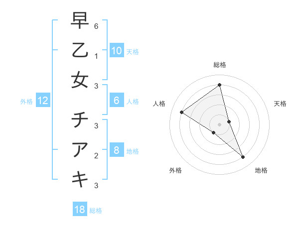 早乙女 チアキさんを姓名の画数から五運を鑑定