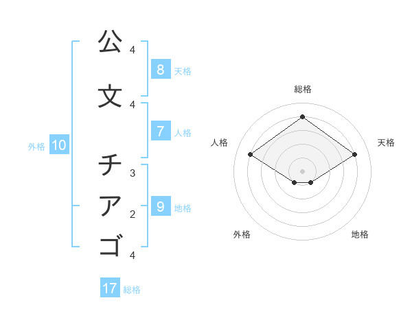 公文 チアゴさんを姓名の画数から五運を鑑定
