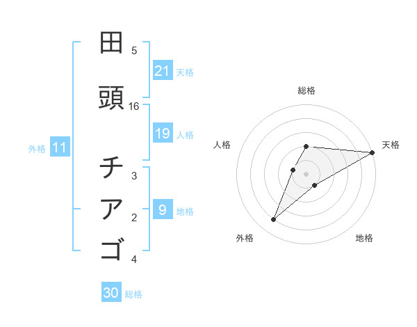 田頭 チアゴさんの天格は21画の5点!