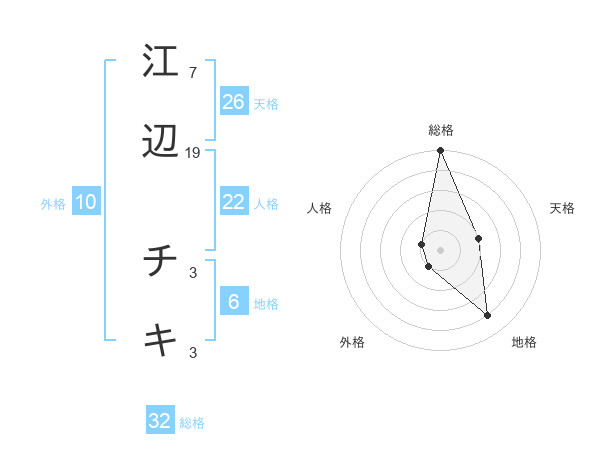 江辺 チキさんの総格は32画の5点!