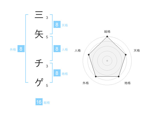 三矢 チゲさんの天格は8画の4点!