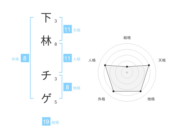 下林 チゲさんの天格は11画の4点!