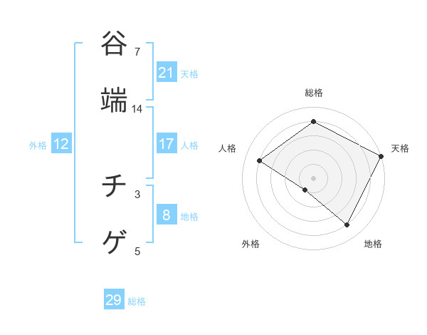 谷端 チゲさんを姓名の画数から五運を鑑定