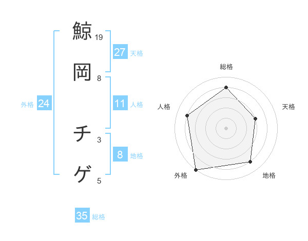鯨岡 チゲさんを姓名の画数から五運を鑑定
