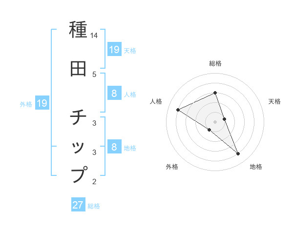 種田 チップさんの総格は27画の3点