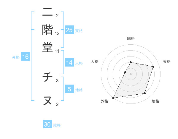 二階堂 チヌさんの外格は16画の5点!