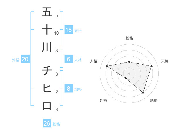 五十川 チヒロさんを姓名の画数から五運を鑑定