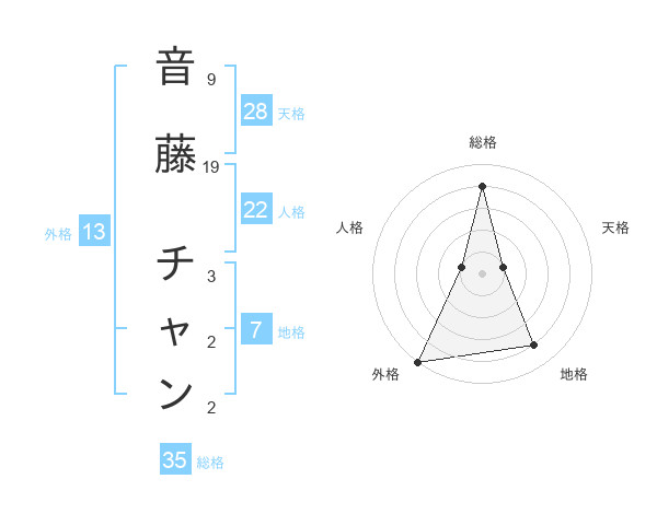 音藤 チャンさんの外格は13画の5点