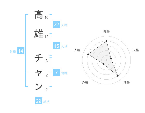 髙雄 チャンさんの総格は29画の4点!