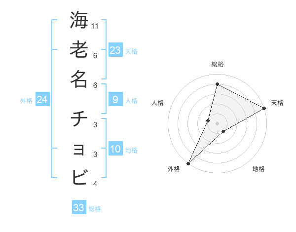 海老名 チョビさんの天格は23画の5点!