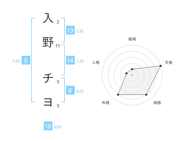 入野 チヨさんの天格は13画の5点!