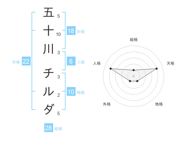 五十川 チルダさんを姓名の画数から五運を鑑定