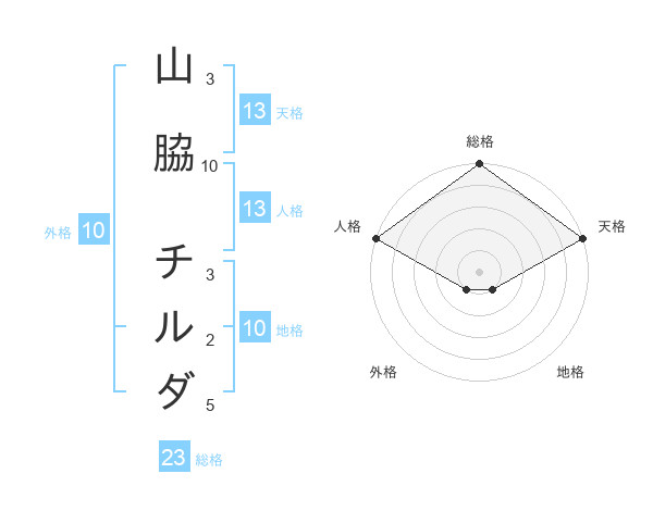 山脇 チルダさんを姓名の画数から五運を鑑定