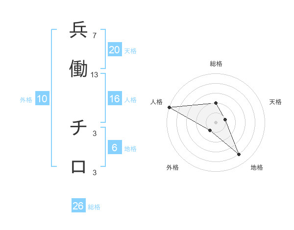 兵働 チロさんの総格は26画の2点!