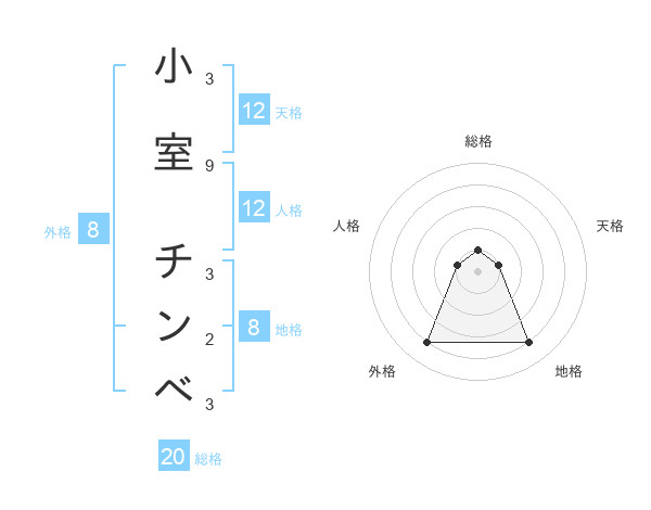 小室 チンベさんの総格は20画の1点!