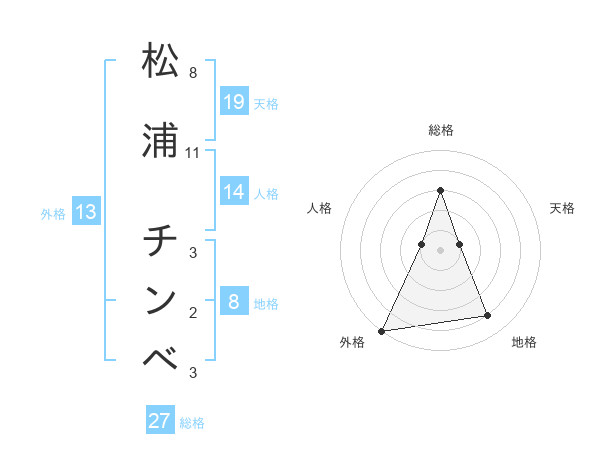 松浦 チンベさんを姓名の画数から五運を鑑定