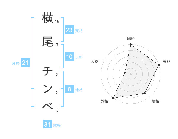 横尾 チンベさんの総格は31画の5点!