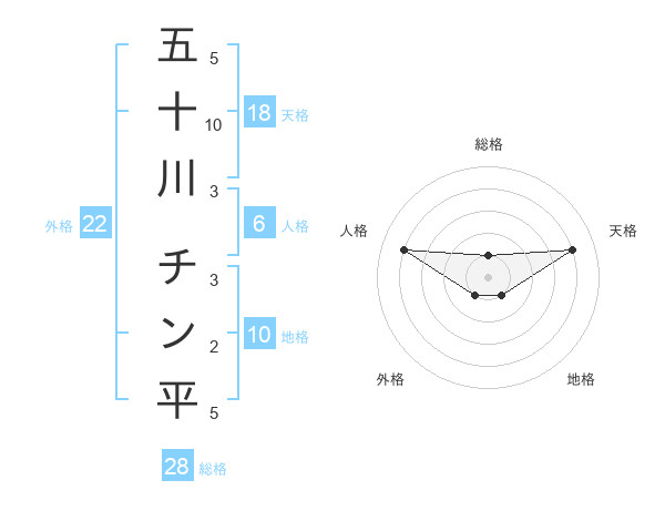 五十川 チン平さんを姓名の画数から五運を鑑定