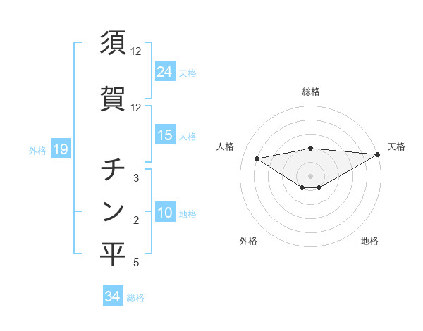 須賀 チン平さんの天格は24画の5点!