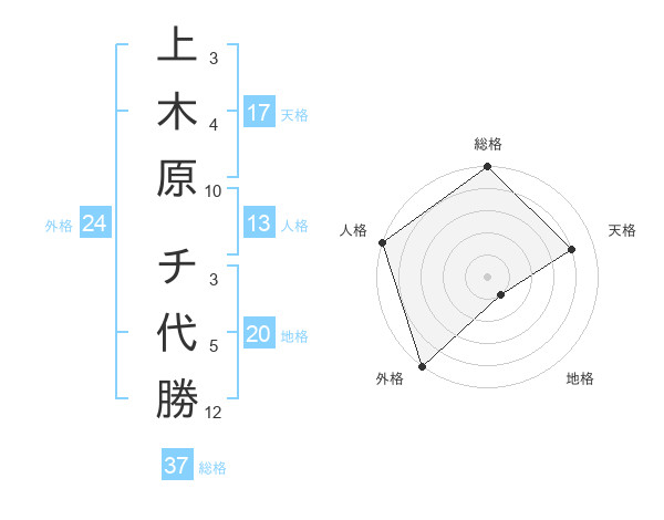 上木原 チ代勝さんを姓名の画数から五運を鑑定
