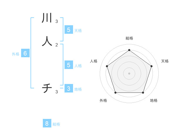 川人 チさんの天格は5画の4点!