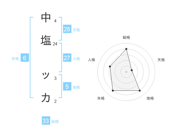 中塩 ッカさんを姓名の画数から五運を鑑定