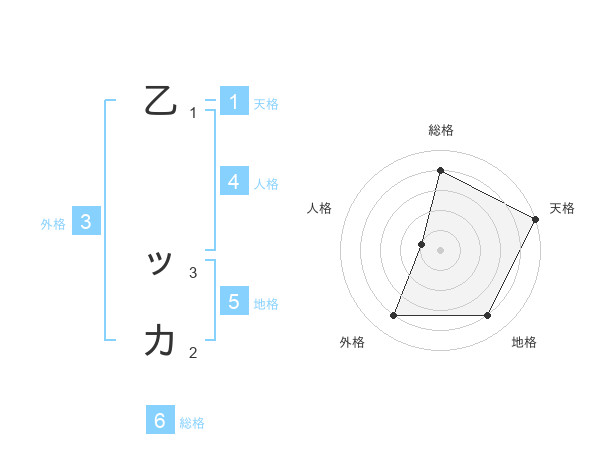 乙 ッカさんの地格は5画の4点!