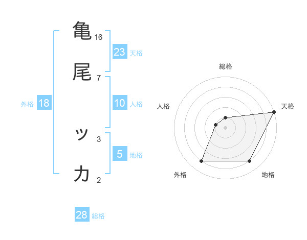 亀尾 ッカさんを姓名の画数から五運を鑑定