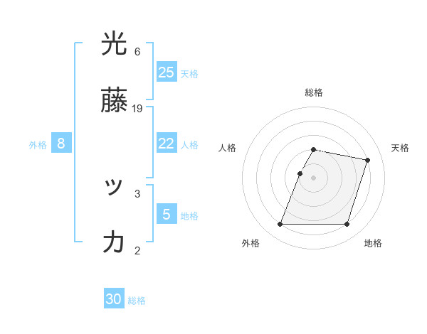 光藤 ッカさんを姓名の画数から五運を鑑定