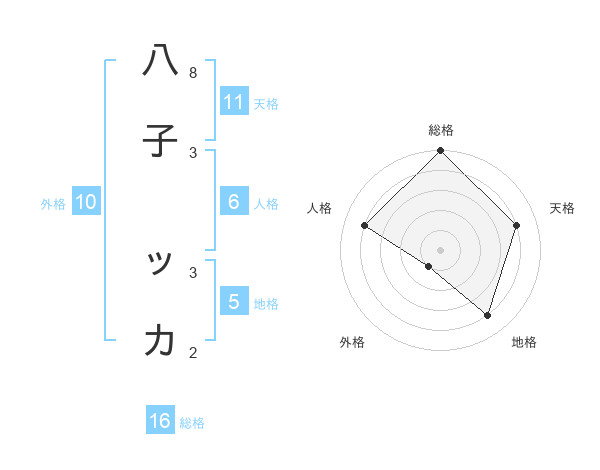八子 ッカさんの天格は11画の4点!