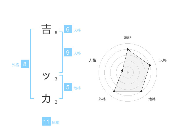 吉 ッカさんの総格は11画の4点!